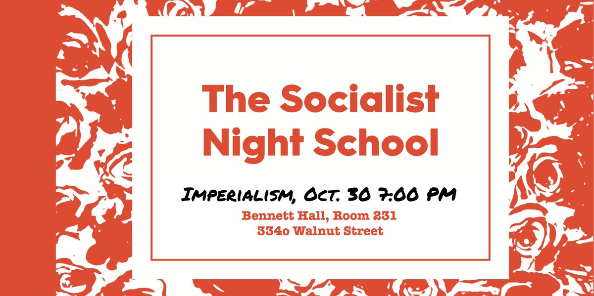 Join us next week for our Night School on the capitalist origins of imperialism! Tuesday October 30th, at 7 PM, in Bennett Hall (UPenn) Stayed tuned for readings and event details! | 9 | 9085 | |