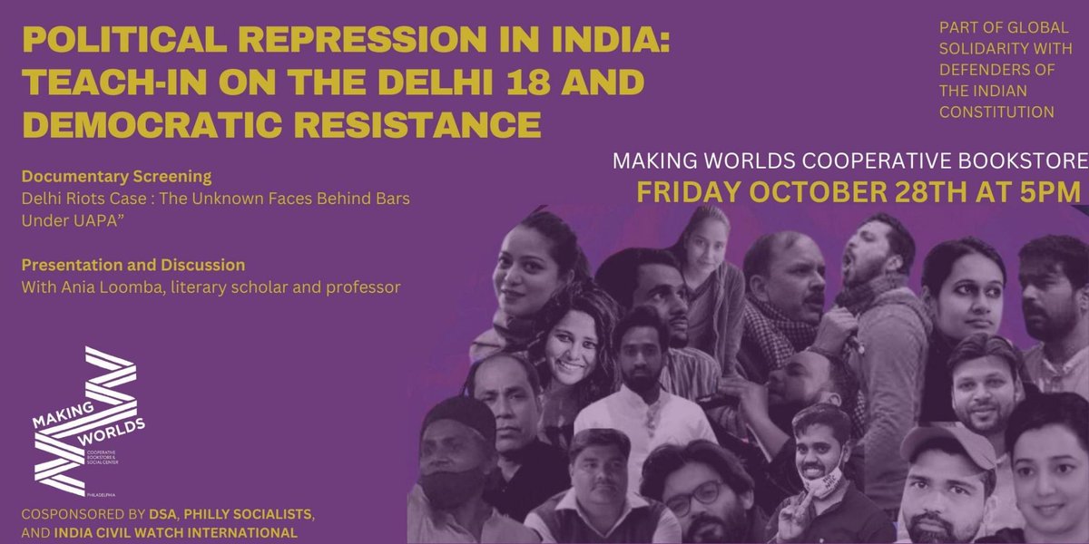We’re proud to support this @MakingWorldsBks event with Ania Loombia on political repression in India. See you on Friday! https://t.co/CUIhishZBF |