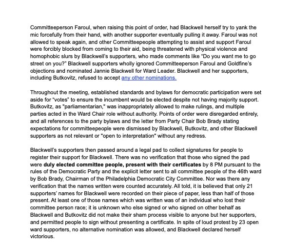 RT @formadeluchar: Blackwell declared herself winner with a 21 minority over the loud protests of a coalition of 23 new and incumbent committee ppl who were set to nominate me as the new WL and possibly the first openly queer WL in Philly's history 🌈 1/11 0 11140