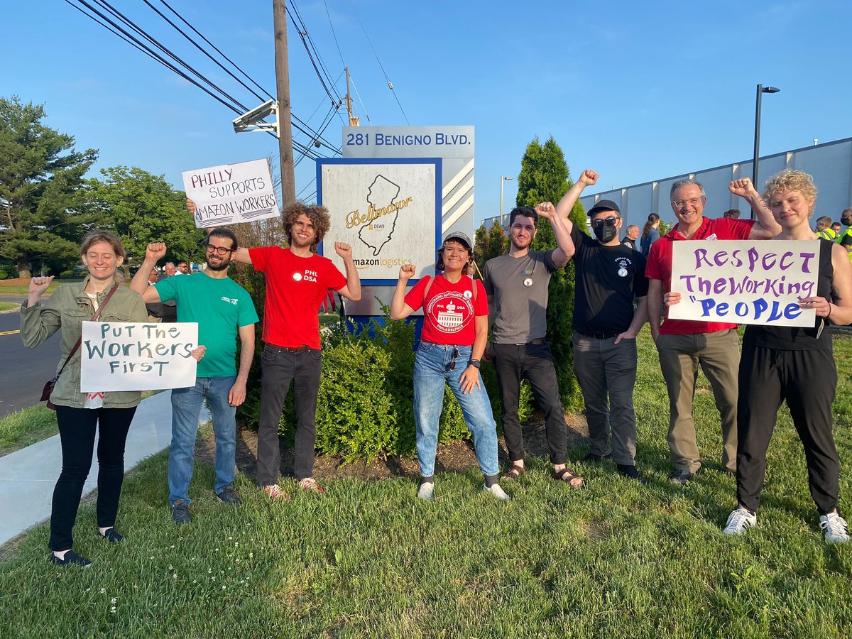 This morning Philly DSA proudly stood with Amazon workers in Bellmawr, NJ who walked out on the job. They join Amazon workers from Staten Island to Chicago to Bessemer who are sick of being treated like “warehouse machinery” by a man rich enough to take joy rides to space. https://t.co/HFYdJCpm4b |