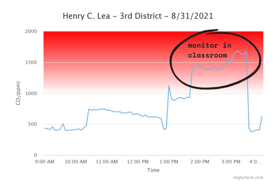 In an effort to document the severity of the ventilation problem in Philly's public schools, parents began sending students to school with CO2 monitors. Low levels of CO2 indicate a space is well-ventilated, reducing the odds of catching COVID-19. 3/7 https://t.co/j4BNO0DuU6 | 9 | 11100 | |