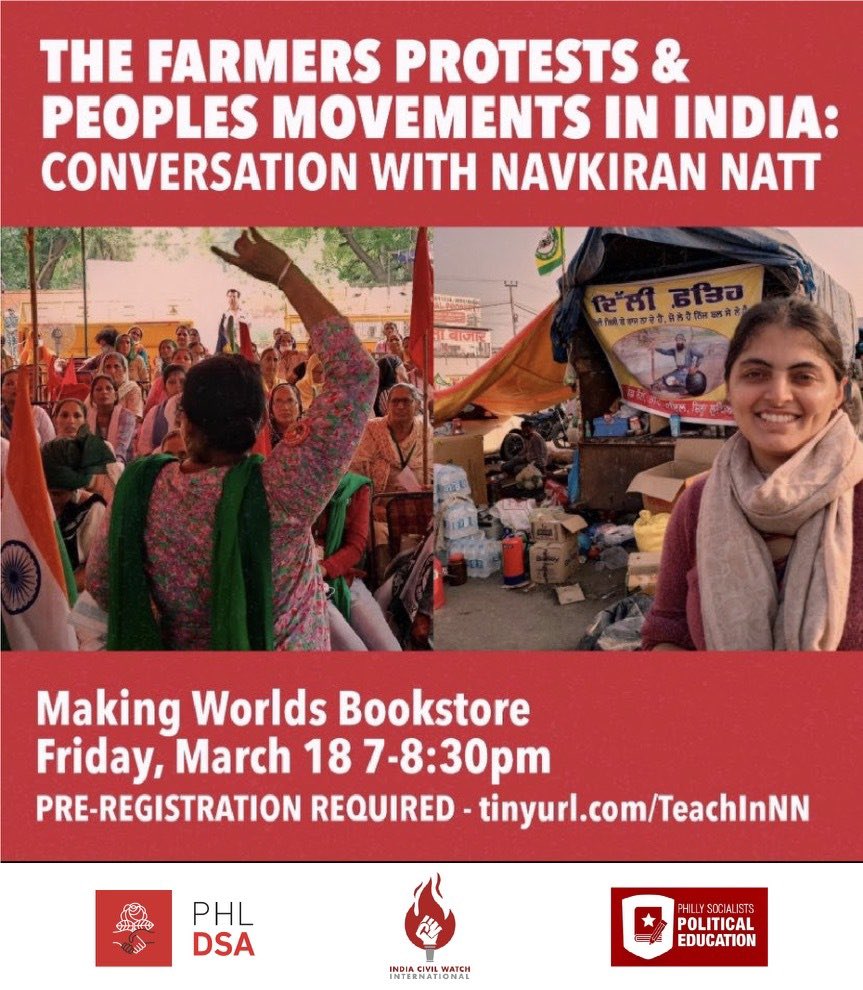 RT @indiacivilwatch: LAST DAY TO REGISTER! Join us for a conversation with @navkiran_natt at @MakingWorldsBks Pre-registration is required: https://t.co/MkwWUFTQoH Event co-sponsored by @phillysocialist, @PhillyDSA and ICWI #philadelphia #FarmersProtest https://t.co/2NqaujCJCV | 0 | 10874 | |