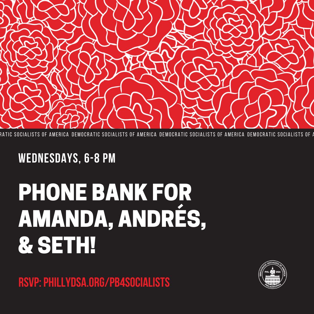 Talking with voters is fun. You know what’s also fun? Talking with comrades about talking with voters. You can do that at our weekly phone banks on Wednesdays from 6-8pm! https://t.co/XoVTfe8PaG https://t.co/xsrbDsCwPE |