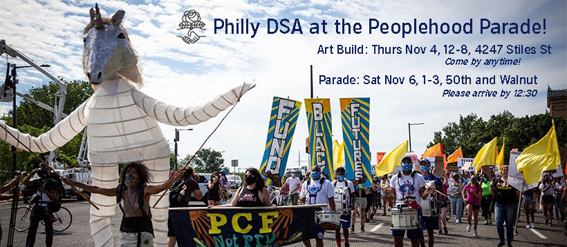 Sneak peek of the Peoplehood Parade 👀 Thanks @Spiralq for hosting our art build! Join Philly DSA members to walk in the parade tomorrow at noon at the Paul Robeson House.🌹 https://t.co/cvC1ohQh65 https://t.co/PlZuXfPfXe |