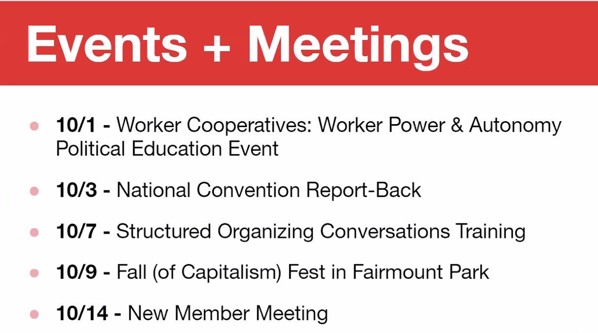 RT @BuxMontDSA: Zoom! This Friday! All are welcome! RSVP here https://t.co/k4BXgSN7iU Join us for our September General Meeting: REPORTS ❌🥪💸 Cancel Lunch Debt Campaign 🚫🕵️‍♀️🕳️ Towamencin anti-privatization OPEN DISCUSSION 🌹 Pennsylvania DSA 🗨️ Slack changes https://t.co/zM0dQPTzua 0 10612