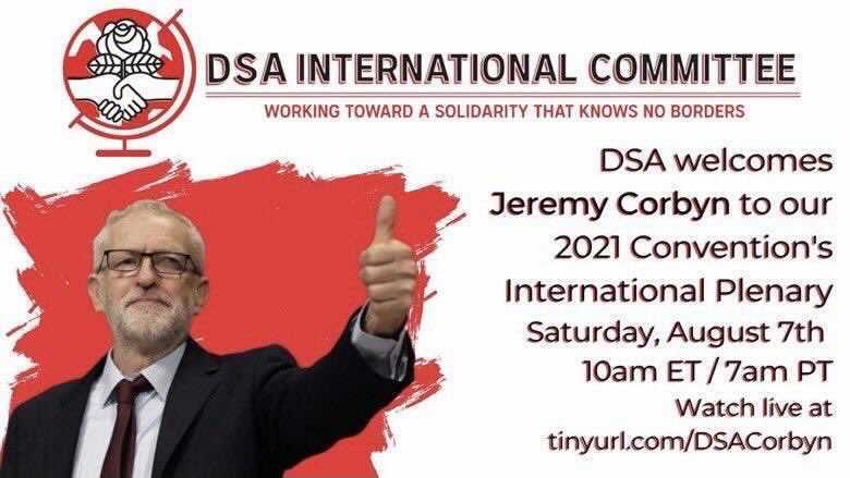 Tune in this Saturday August 7th at 10am EST/7am PST for a International Plenary hosted by @DSA_Intl_Comm with special keynote speaker @jeremycorbyn You can watch it live at the this link: https://t.co/MWPoParliF https://t.co/OXan1z7sV8 42 10559