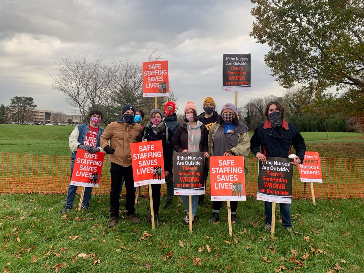Philly DSA members are out on the picket line this morning with @BuxMontDSA supporting @PennaNurses in their demand for a safe and fair contract! #nursestrong https://t.co/m4hHw12vXL |
