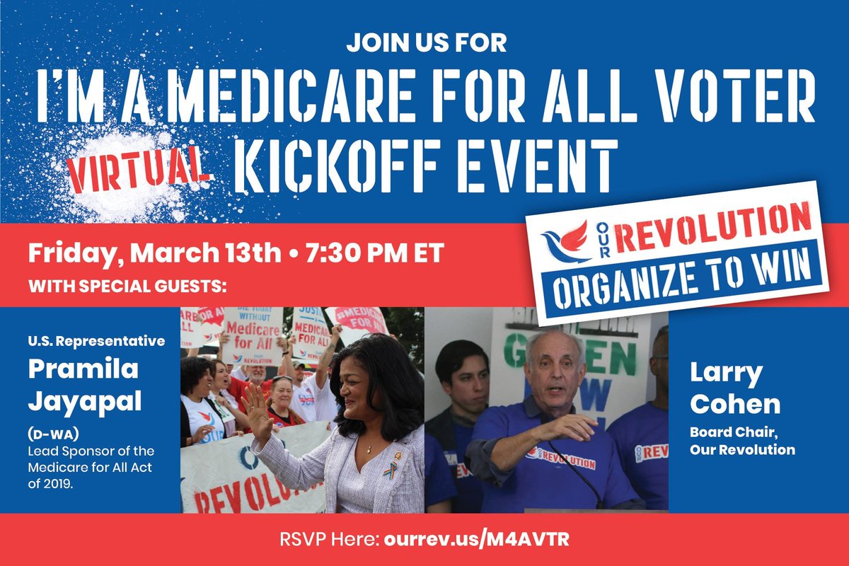 .@OurRevolution's "I'm a #MedicareForAll Voter" Kickoff Event will now be held virtually at the originally-scheduled time! RSVP for Zoom webinar details. https://t.co/Ke78t76EGb https://t.co/22gbpgOvOs 3 9087