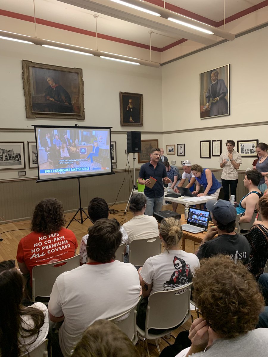 We’re hosting a debate watch party on Thursday! Come watch Bernie stand for democratic socialism and fight for universal programs like #CancelStudentDebt, #MedicareForAll, and #GreenNewDeal Party starts at 8, Debate at 9. Free and BYOB in the basement of First Unitarian Church https://t.co/n7svQ5pvlS 12 9085