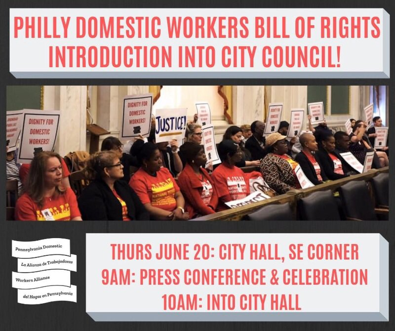 If passed in the fall, Philly would become the largest city in the country to legislate a Domestic Worker Bill of Rights! Join us tomorrow 6/20 at 9am at City Hall to support the fight for safe & dignified workplaces for domestic workers. (To enter City Hall you must bring ID) https://t.co/PQeTM3eDJd 4 9085